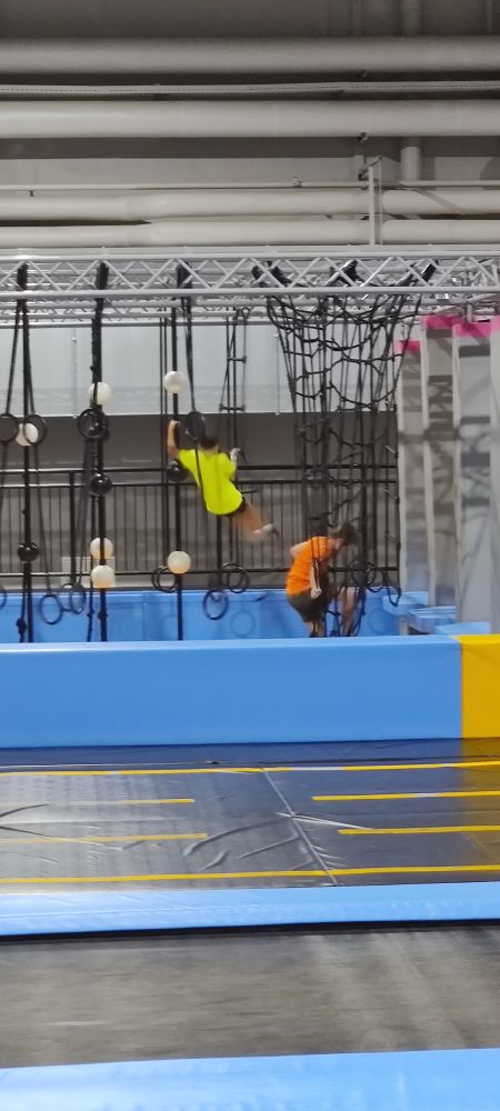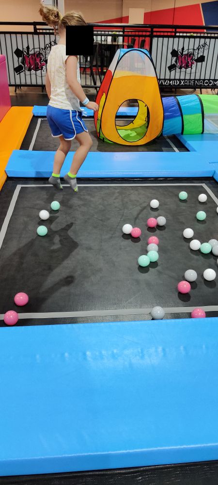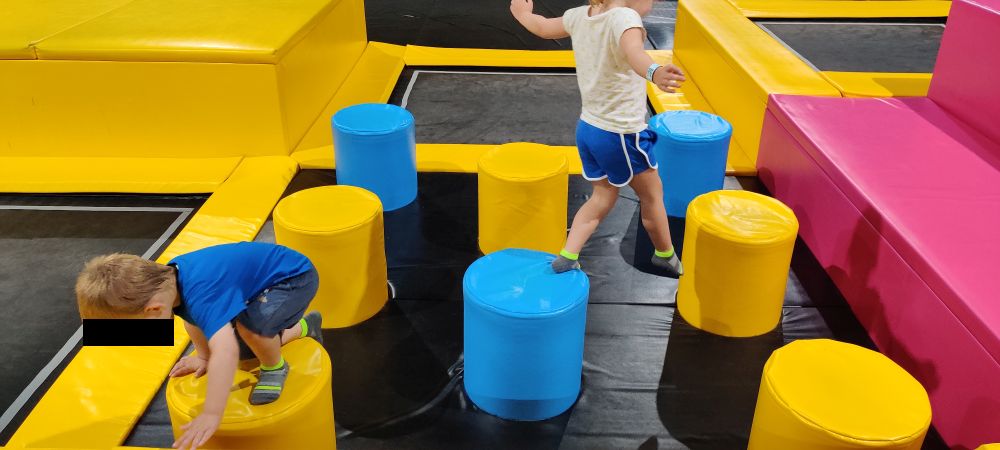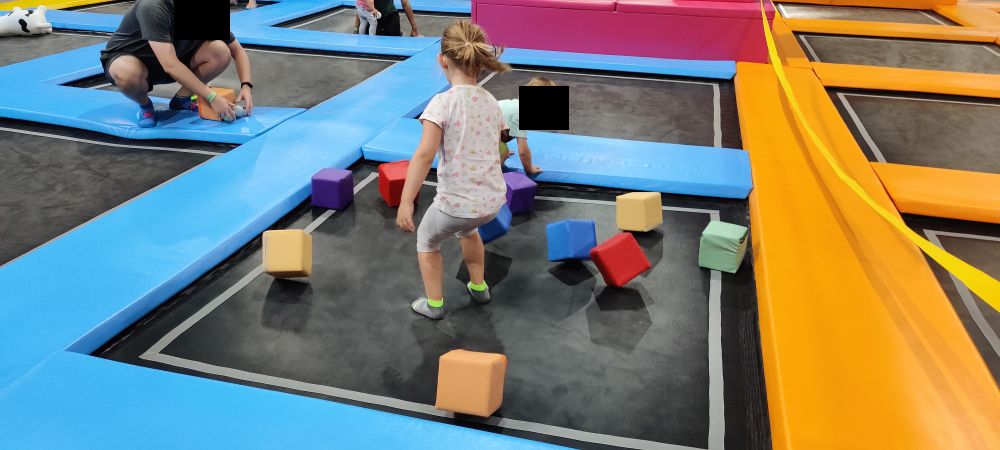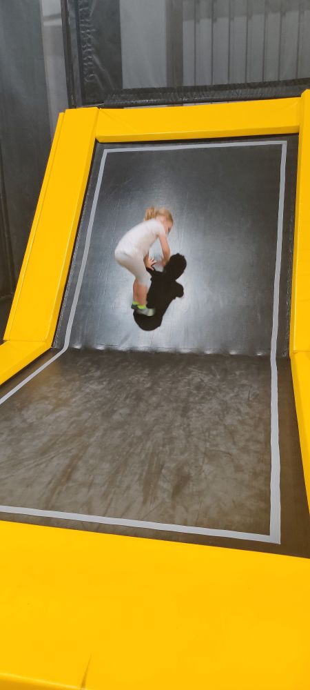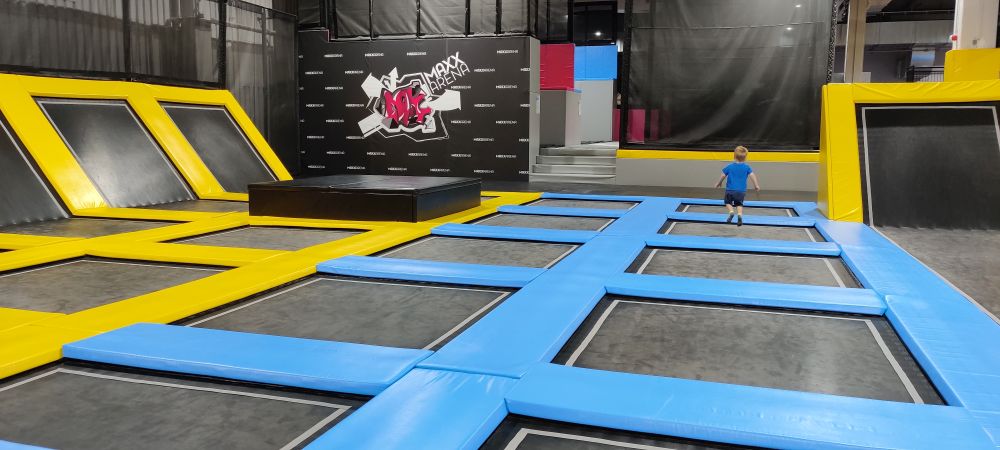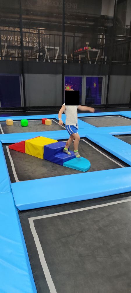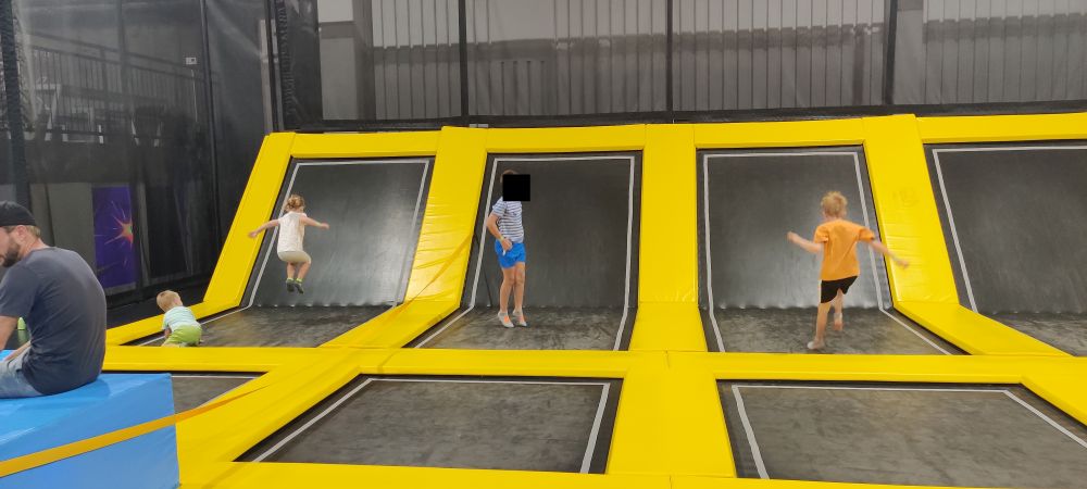 Start ist gleich um 9 Uhr – also der erste Durchgang, der in die Trampolin-Area darf. Wir waren oft nur mit ein paar anderen Kindern da. Um 9:30 Uhr und 10:00 Uhr kamen dann schon deutlich mehr Besucher.