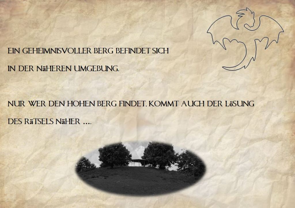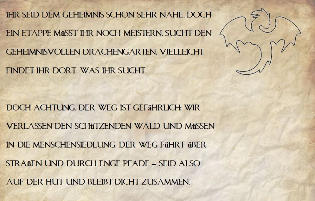 Station 1: Die Schatzsuche startet bei uns im Hof. Der erste Hinweis und die mysteriösen Karte waren an unserem Willkommensschild hinterlegt.