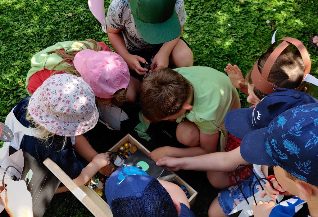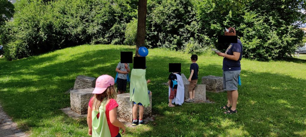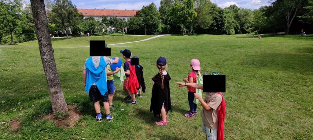 Unser Großer wünschte sich unbedingt eine Schnitzeljagd – der Wunsch war mir Befehl. Ich habe mir ein Abenteuer ausgedacht, die Route durch unseren Stadtpark und die Stationen festgelegt und über das Jugendreferat entsprechend Spielgeräte ausgeliehen.