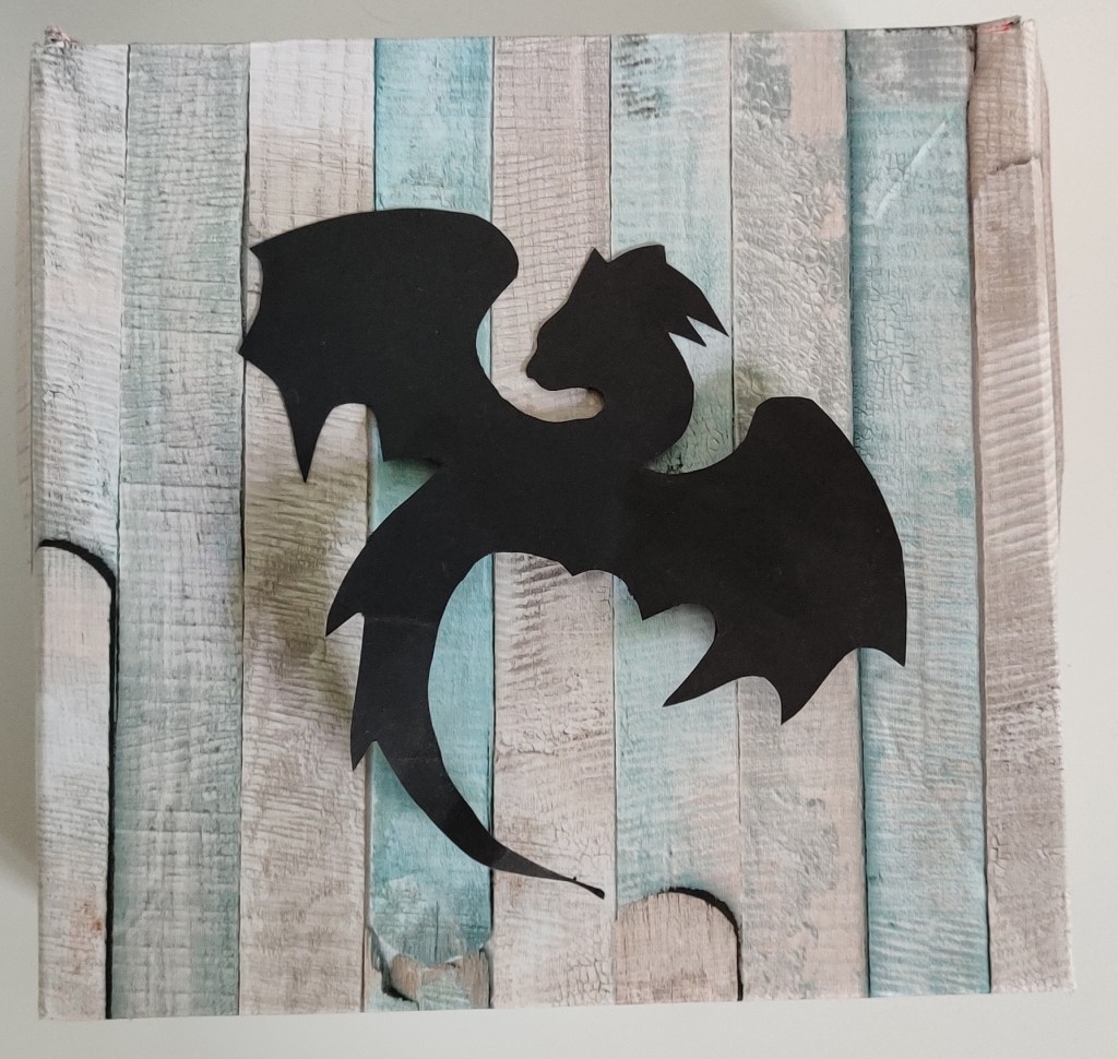 Die Schatztruhe war eine Holzkiste, die wir immer wieder für Spiele verwenden. Ich ändere nur immer den Aufkleber auf der Kiste. Innen befanden sich kleine Drachen-Figuren von Drachenzähmen leicht gemacht, Goldtaler und Kugeln aus Schokolade, Muscheln und Kristallsteine sowie weiße und schwarze Mitgebsel-Tüten.