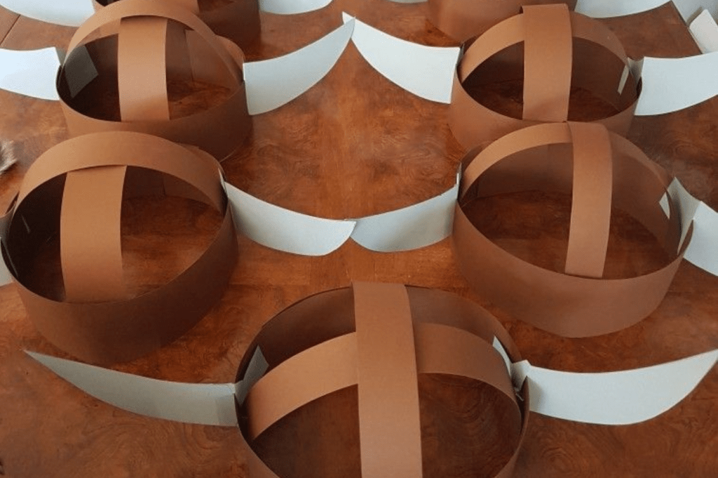 Die Einladungen haben wir selbst gebastelt nach der Vorlagen in Bild 1. Jedes Kind durfte sich als ein Drache verkleiden. Ich habe aus schwarzen, grünen, roten und blauen Erwachsenen-T-Shirts kleine Kostüme gemacht. Hierzu habe ich die Shirts vorne aufgeschitten und die Ärmel abgeschnitten. So wirken sie wie Flügel. Für uns Erwachsenen habe ich Wikingerhelme gebastelt.
