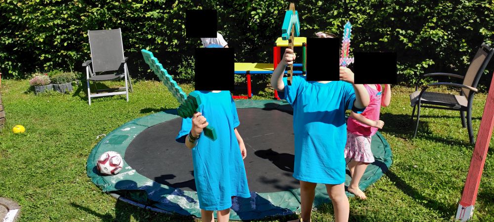 Auch den 7. Geburtstag haben wir – wegen Corona – im Sommer nachgefeiert. Unter den Jungs ist Minecraft der absolute Hit und war das Wunschmotto für die Geburtstagsparty. Aber nicht alle Gäste kennen Minecraft, daher sind die Beschreibungen im Abenteuer sehr ausführlich. Alle sollten gleichermaßen ins Abenteuer reinfinden und mitmachen.