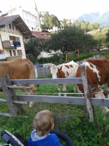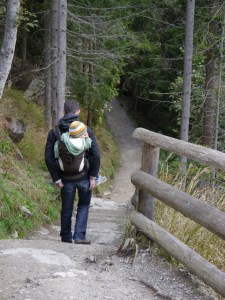 Der Ausflug führte uns zunächst in das 40 km entfernte Innichen. Dort wanderten wir den Berg hinauf bis zur „Riese Haunold Hütte“. Wir hatten den Kinderwagen dabei, denn der Weg ist sehr breit aber stellenweise steil. Bergab konnten wir den Kinderwagen problemlos im Sessellift mitnehmen. Nach einer Stärkung in der Hütte erkundeten wir das Zwergendorf, die Zwergenhöhle und das Riesenreich Haunold.