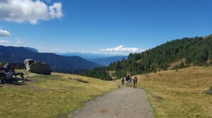 Mit der Gondel sind wir auf den Berg Plose gefahren um dort den Erlebnisrundweg Woody Walk (5 km) zu laufen. Der Weg ist sehr gut mit Kinderwagen zu gehen und bieten an der Spitze die Einkehrmöglichkeit in die Rossalm, einer der schönsten Hütten in Südtirol. Ein fantastischer Ausblick auf die Dolomiten und tolle Spielmöglichkeiten.
