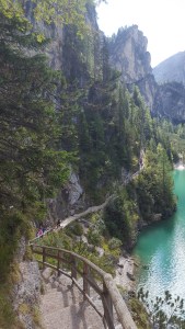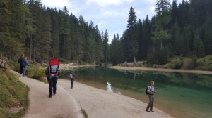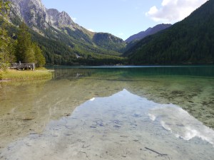 Der Pragser Wildsee ist ein Highlight der Gegend – das stimmt auch. Er liegt wunderschön umrahmt von Gipfeln, das Wasser ist glasklar und der Rundweg bietet tolle Perspektiven auf den See und die Umgebung. Aber er ist wahnsinnig überlaufen. Am Ufer beim Restaurant sammeln sich die Mengen und beim Rundweg steht man an Engstellen im „Stau“.