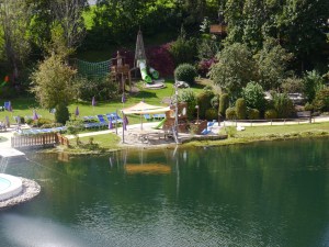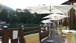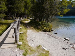 Der Rundweg vom Restaurant rechts herum ist auch für den Kinderwagen geeignet. Man kommt bis zum gegenüberliegenden Seeufer. Der Rundweg links herum ist abenteuerlicher, denn er ist schmaler und eng an dem Berg angeschmiegt.