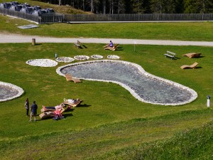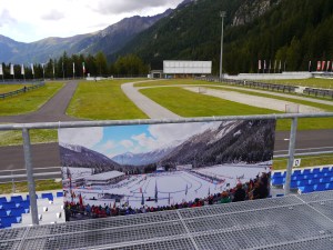 Wir haben am Biathlon-Station geparkt und uns erstmal dieses angesehen. Man kann sowohl außen auf den Rängen laufen als auch in den Innenbereich gelangen. Die Shooting-Range war nur mit Abstand zu erkunden, da dort trainiert wurde.