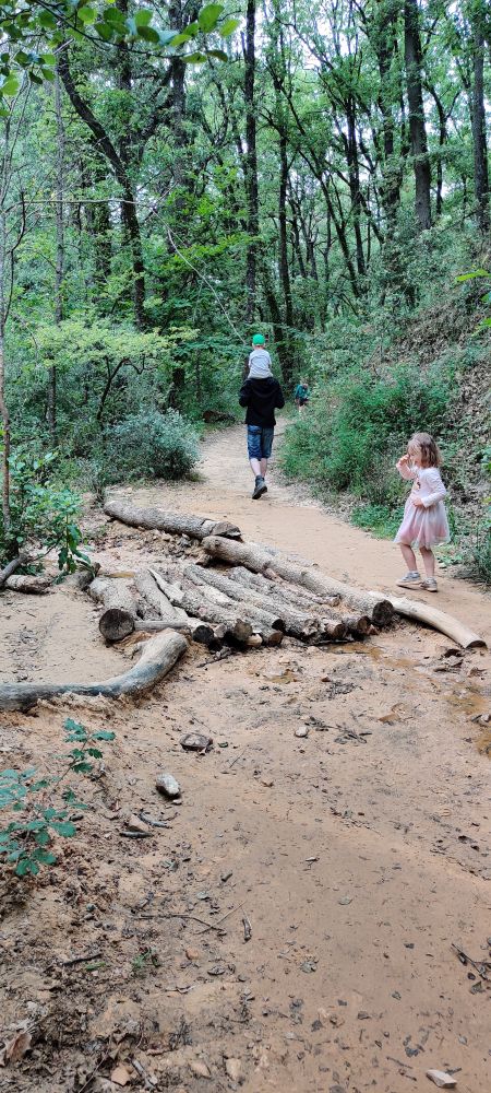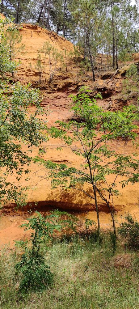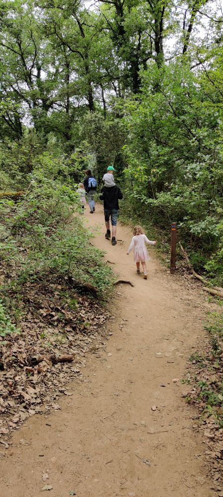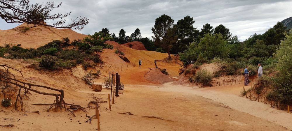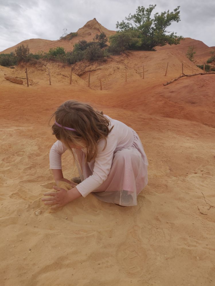 Angekommen am Park Colorado Provençal wählten wir den 2,1 km langen Rundweg „circuit du sahara“ durch den ehemaligen Okersteinbruch. Es gibt noch einen längeren Rundweg (zweigt nach der Hälfte ungefähr ab) und führt bergauf mit Blick von oben auf den Steinbruch. Mit den Kleinen war das an dem Tag leider nicht machbar.