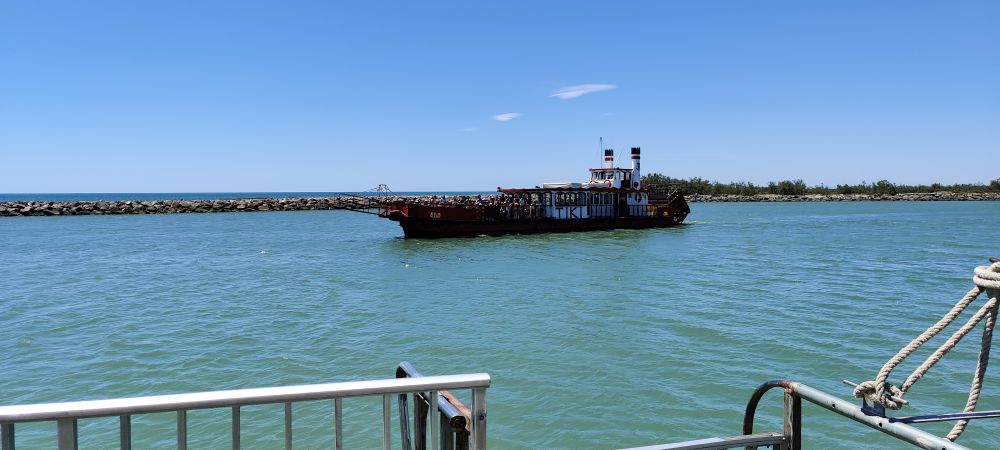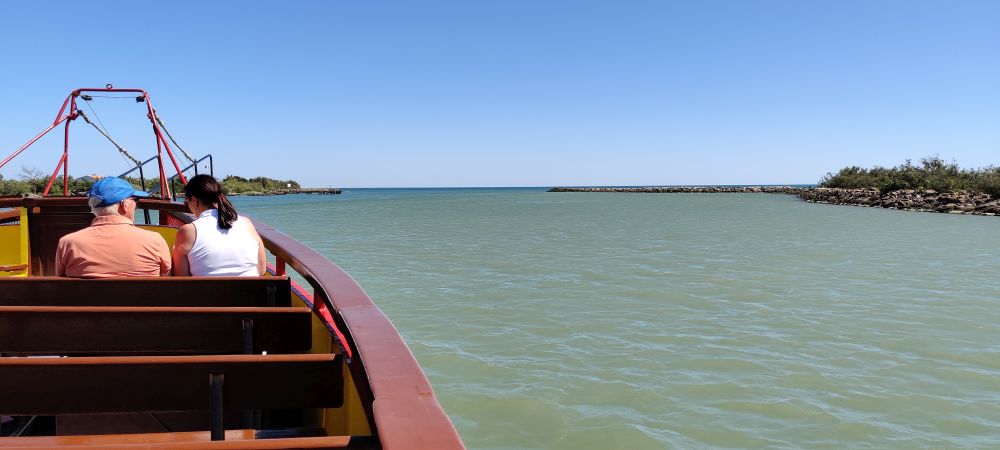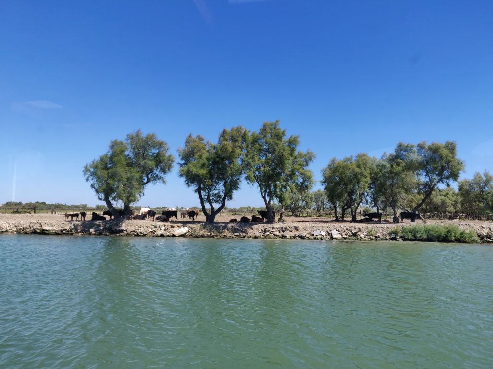 Unser letzter Programmpunkt war die Schifffahrt „Au Coeur de la Camargue“ auf der kleinen Rhone mit dem Schaufelraddampfer Tiki III. Die Fahrt war ganz spaßig, es gab viel zu sehen – Pferde, Stiere, Vögel, Otter etc. Aber 90 min waren für uns zu lange. Den Kids wurde dann irgendwann langweilig und bei 40 Grad war es in der Sonne unerträglich.