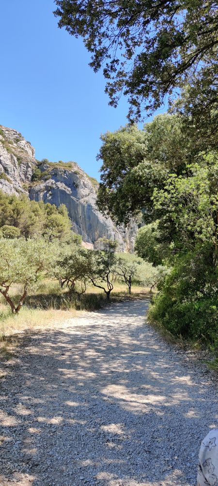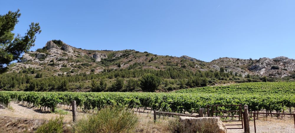 Am heutigen Tag wollten wir durch die Landschaft des Naturparks der Alpillen fahren und an verschiedenen Punkten halten. Via Eygières und Mouries fuhren wir bis Les Baux de Provence, wo wir uns die imposante Burganlage ansehen wollten oder ein Stück weiter die Ausgrabungstätte Glanum. Die Laune der Kids war aber nicht besonders gut und die Hitze wieder grenzwertig.