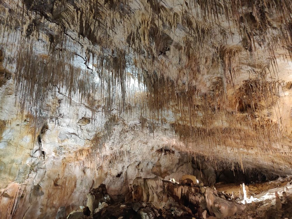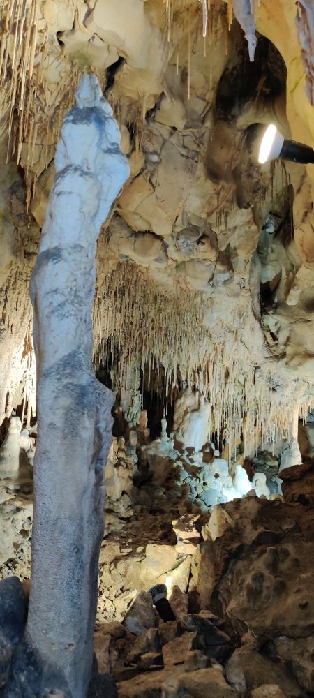 Die Grotte wurde 1902 bei Steinbrucharbeiten entdeckt. Sie ist ca. 60 Millionen Jahre alt. Die Grotte hat eine Temperatur von ca. 13 Grad, also Pulli anziehen 🙂 An den abgeschliffenen Wänden kann man erkennen, dass sich hier vor langer Zeit ein unterirdischer Fluß durchschlängelte.