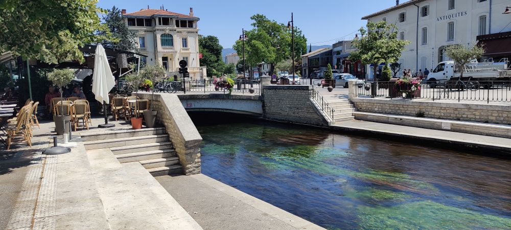 Die Sorgue entspringt etwa 10 km östlich. Die Quelle ist auch ein Besuchermagnet, aber mit 40 Grad war es uns einfach zu heiß, um noch etwas zu unternehmen.