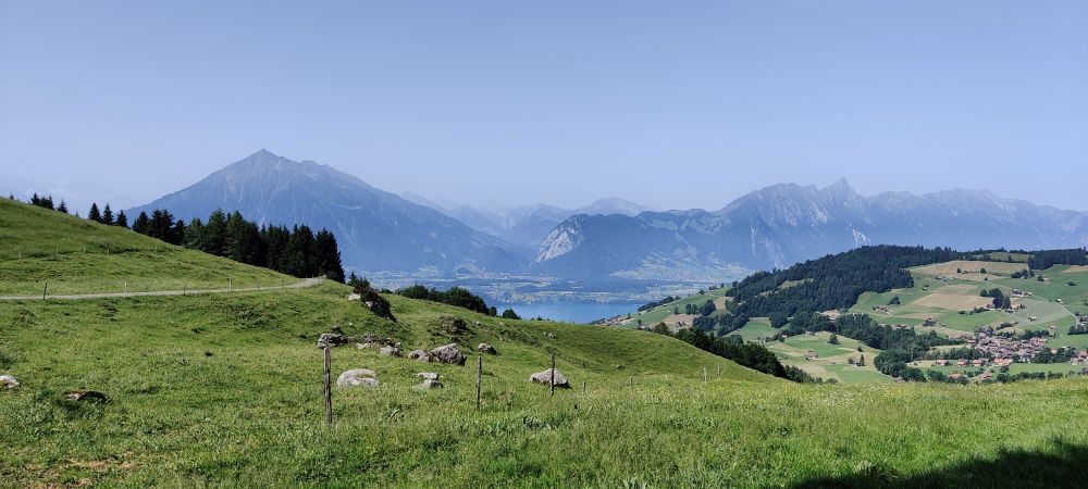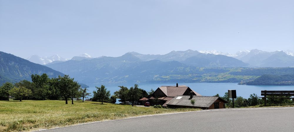 Auch die Rückfahrt haben wir wieder auf zwei Tage geplant. Unseren Zwischenstopp machten wir in Heimberg im Hotel Rössli in der Nähe des Thuner Sees. Am nächsten Vormittag besuchten wir eine Alm oberhalb des Sees, bevor wir die letzte Reiseetappe in Angriff nahmen.